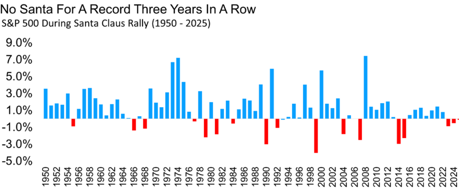 *The Santa Claus Rally is the final five trading days of a calendar year and the first two of the following year.