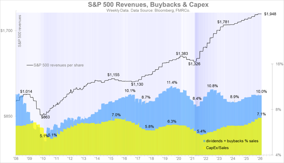 Corporate investment appears to be quietly entering a powerful upswing, reshaping both market leadership and the underlying character of this cycle. The evidence is visible in how much more of each revenue dollar is now being reinvested, yet without sacrificing shareholder distributions.