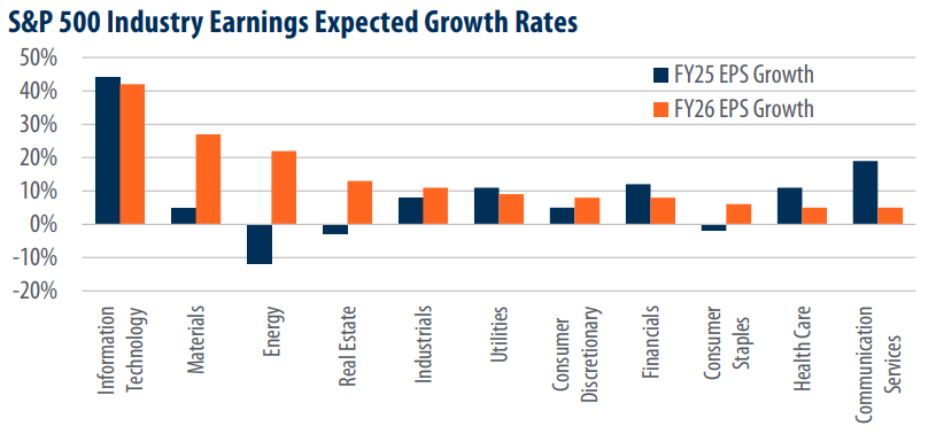 The current earnings cycle appears firmly in expansion mode, with profits not only recovering but pushing toward some of the fastest projected growth in years. Sector leadership is rotating toward areas like energy and materials, while early 2026 earnings results—already ahead of expectations—reinforce a still-supportive backdrop for equities where sector selectivity is likely to be rewarded. However, with inflation currently accelerating and central bank interest cuts on hold for now, the upside could be limited if this pace of earnings growth doesn’t continue.