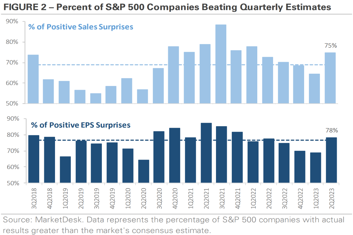 On the other hand, there also continues to be positive signs around decelerating inflation, the stable and resilient U.S. consumer, impressive corporate earnings beat rates and forward guidance, and strong employment numbers. In addition, there are numerous technical/sentiment hurdles that the stock market has crossed which in the past have provided accurate and positive forward-looking returns.