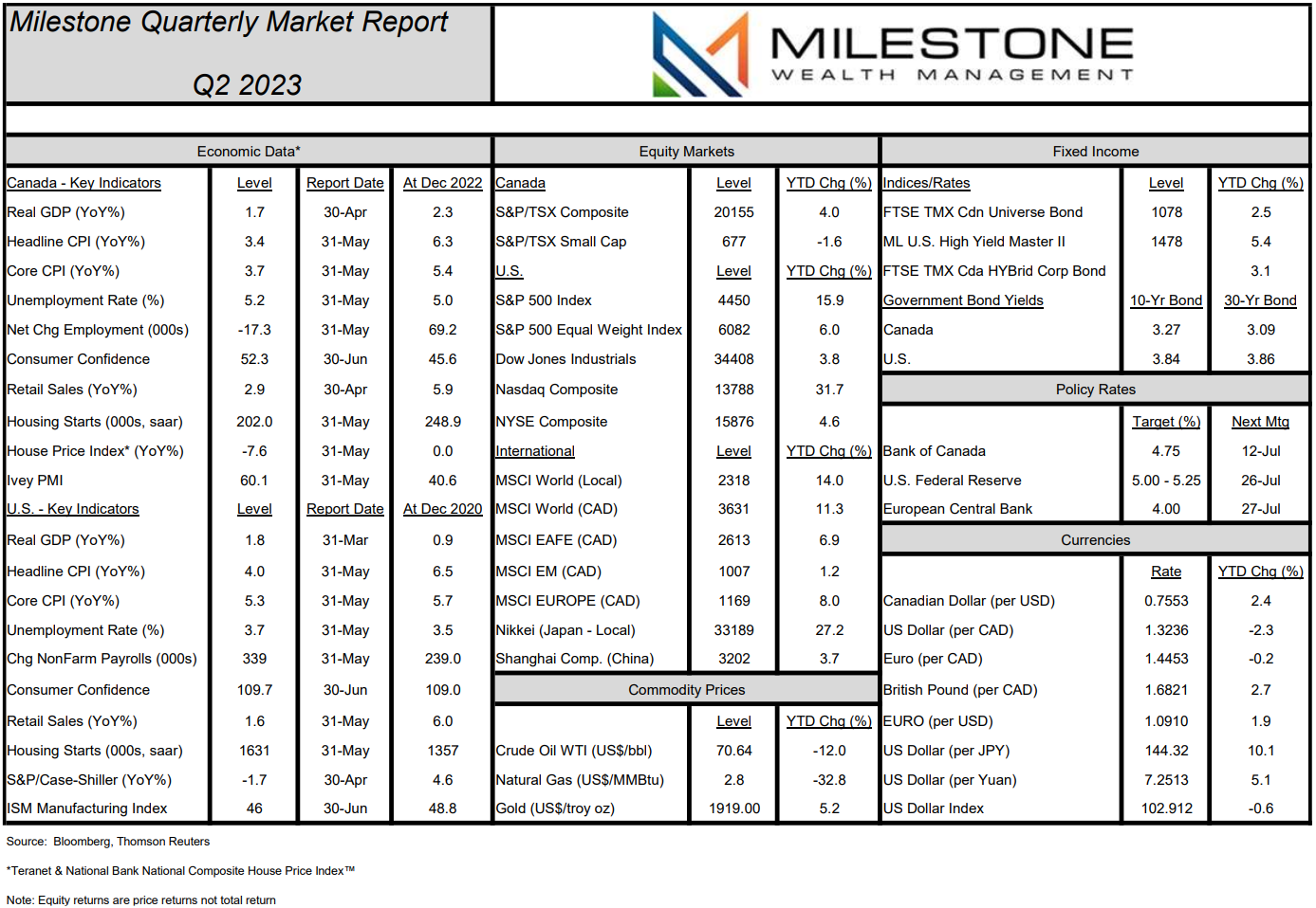 Here is our Milestone Market Report on economic data, capital markets, commodities, and currencies through June 30th, 2023: