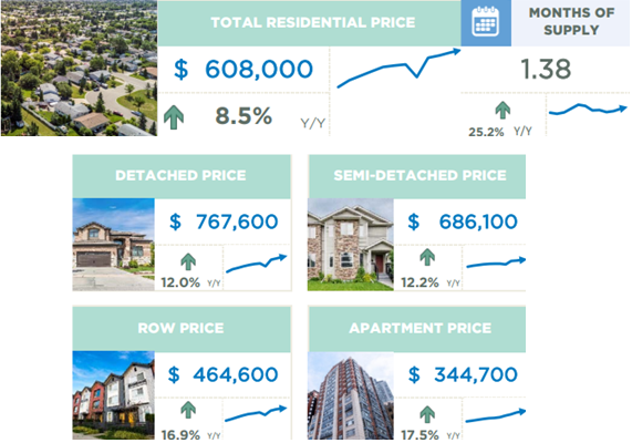 While detached homes faced the largest sales decline, other property types showed varying results. Apartment sales declined by 7.6%, but year-to-date sales are up 13% and at record-high levels. The semi-detached and row home segments also saw declines in sales but continued to experience strong price growth. The persistent imbalance between supply and demand, particularly in the lower price ranges, suggests that the Calgary real estate market may continue to see upward pressure on prices in the near term, despite the recent cooling in sales volume. Time will also tell if the two consecutive quarter point target rate decreases by the Bank of Canada (directly impacts prime lending rate) in June and most recently this week will have an impact on future property sales and prices.