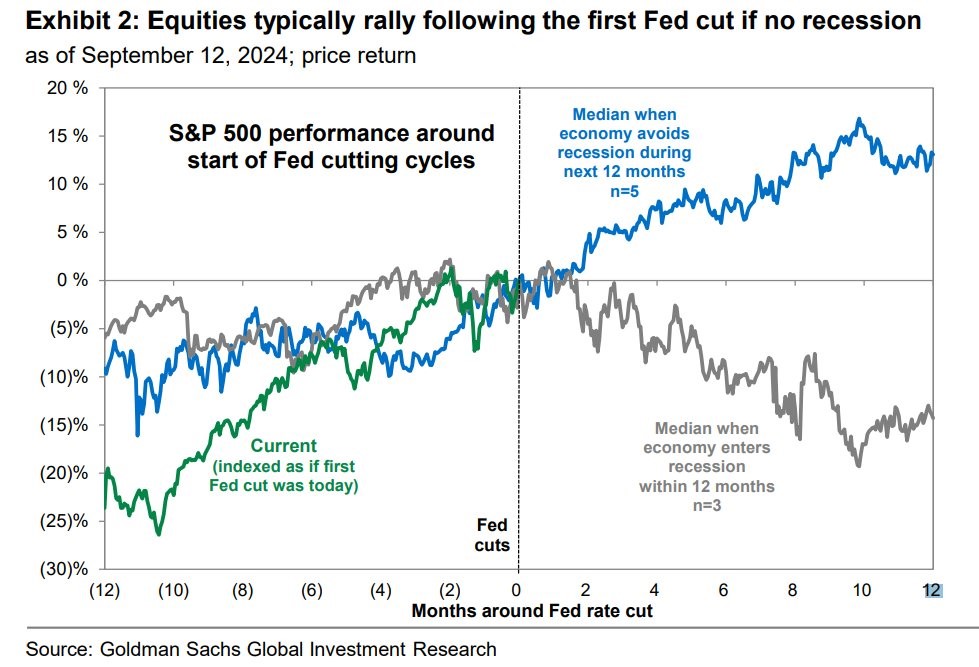 The S&P 500 Index has typically rallied in the past following the first Fed cut when no recession occurs in the next 12 months. This is what you may have heard called soft vs. hard landing. Lower borrowing costs stimulate economic activity, as businesses and consumers can access cheaper loans. This tends to boost corporate profits and consumer spending, which is generally positive for stocks. On the other hand, if it is more of an indication of a severe deterioration in economic growth and unemployed, with the Fed being ‘behind the curve’, it can also be viewed negatively. The Fed's decision to cut rates this week, along with their accompanied statement, is suggesting their confidence that inflation is under control, while allowing them to focus on supporting economic growth. This will hopefully reassure investors about the economic outlook.